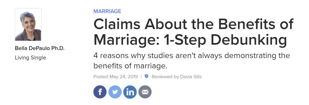 Sometimes bloggers with opposing agendas will write contradictory blog posts under the Psychology Today brand. Below is an example of two blog posts about marriage and happiness. One claims that marriage typically makes people happier. The other one claims that marriage does not make people happier. I evaluate the scientific evidence presented in these blog posts to show that these blog posts are uninformative or even misleading.